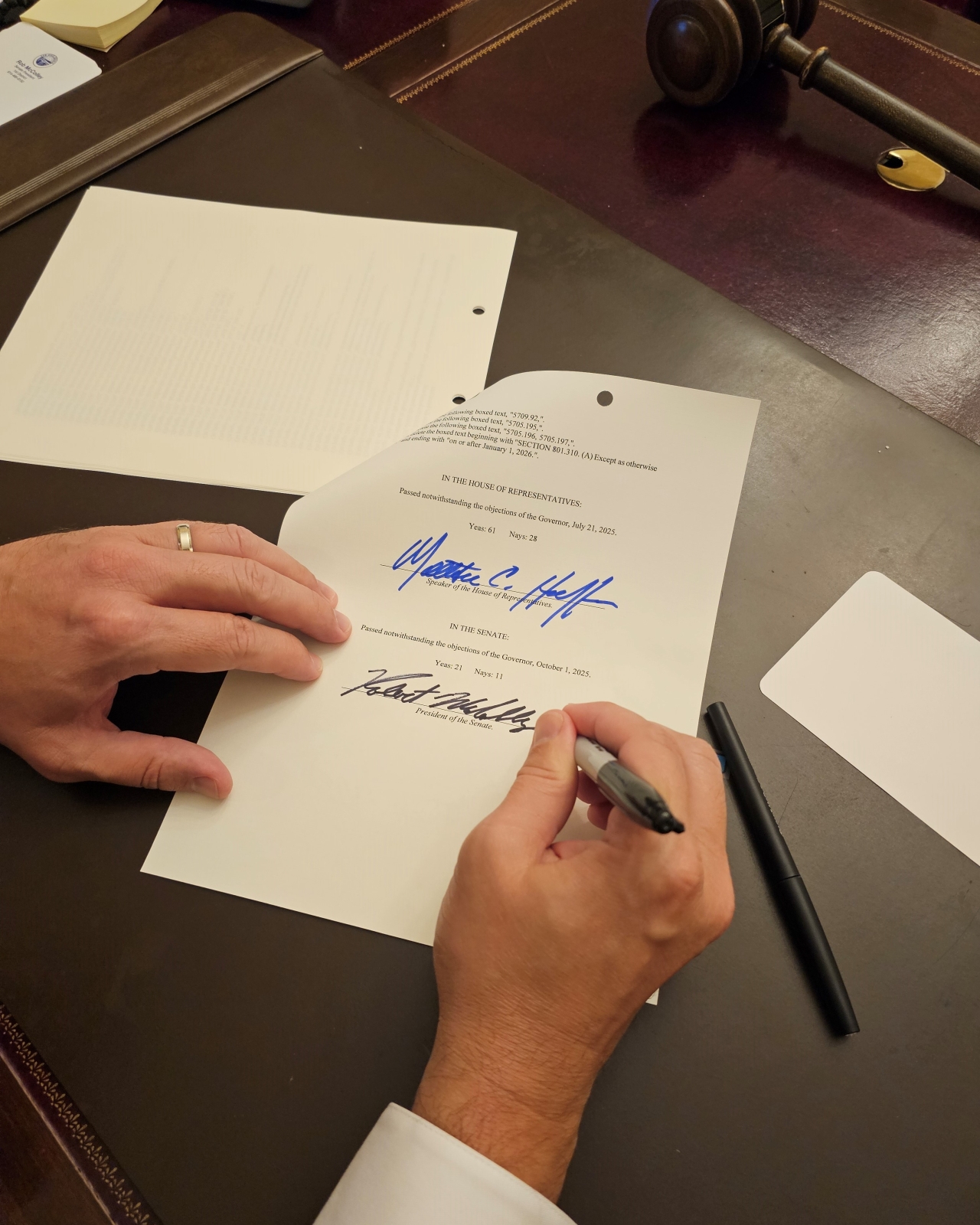 "Today's veto override is the first step in accomplishing more reforms passed by the General Assembly and it also paves the way for future legislation," said Senate President Rob McColley. "Ohioans have made it clear property taxes are out of control. They're right. We heard you. We acted to rein in a system that has been leveraged against taxpayers by allowing runaway increases without a vote of the people."